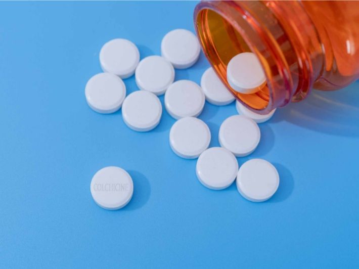 كولشيسين هو دواء من فئة مضادات النقرس يؤثر على استجابة الجسم لبلورات حمض اليوريك مما يساعد في تقليل الورم والألم.