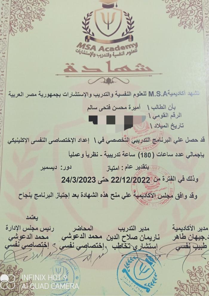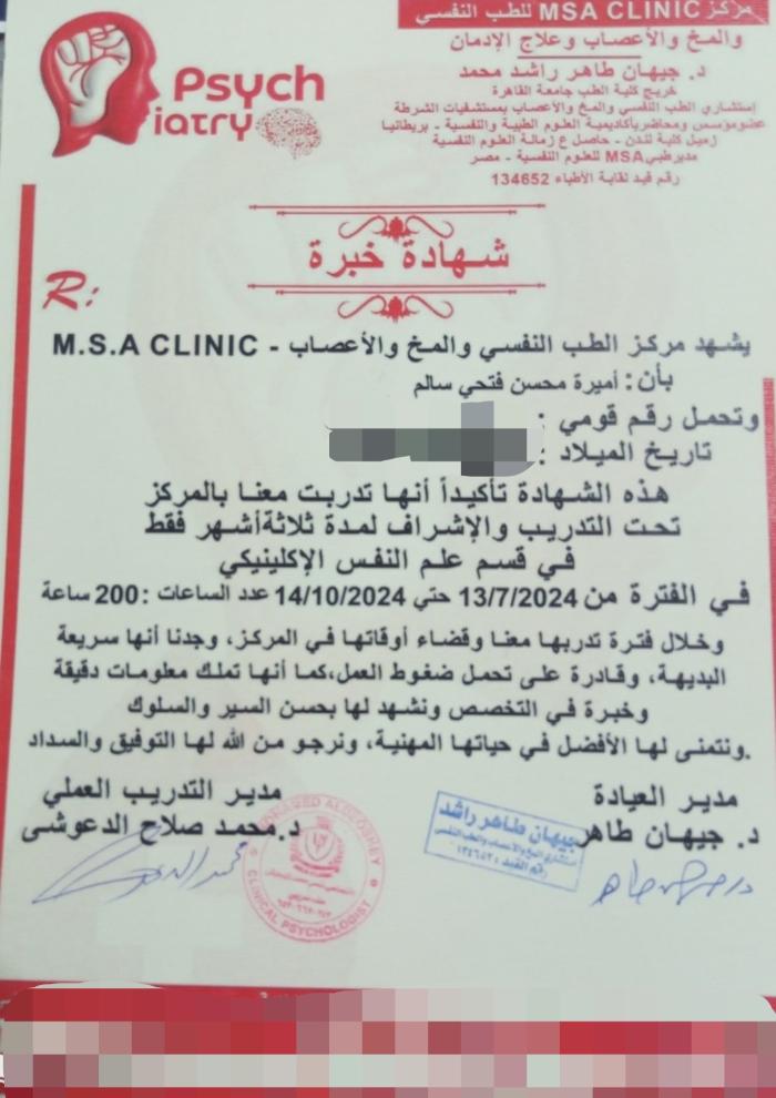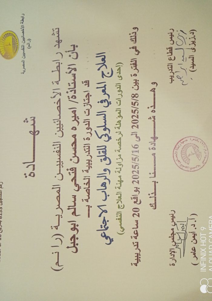 أخصائي نفسي ولا يعالج بالادوية أو الجراحةاختصاصية نفسية اكلينيكية متخصصه في العلاج المعرفي والجدلي السلوكي والدعم النفسي وتعديل السلوك